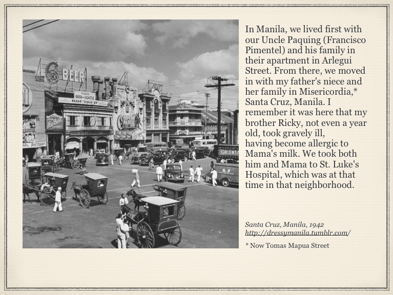 It was also here that my sister Chita and I returned to school, elementary grades at Balagtas Elementary1 in Santa Cruz.