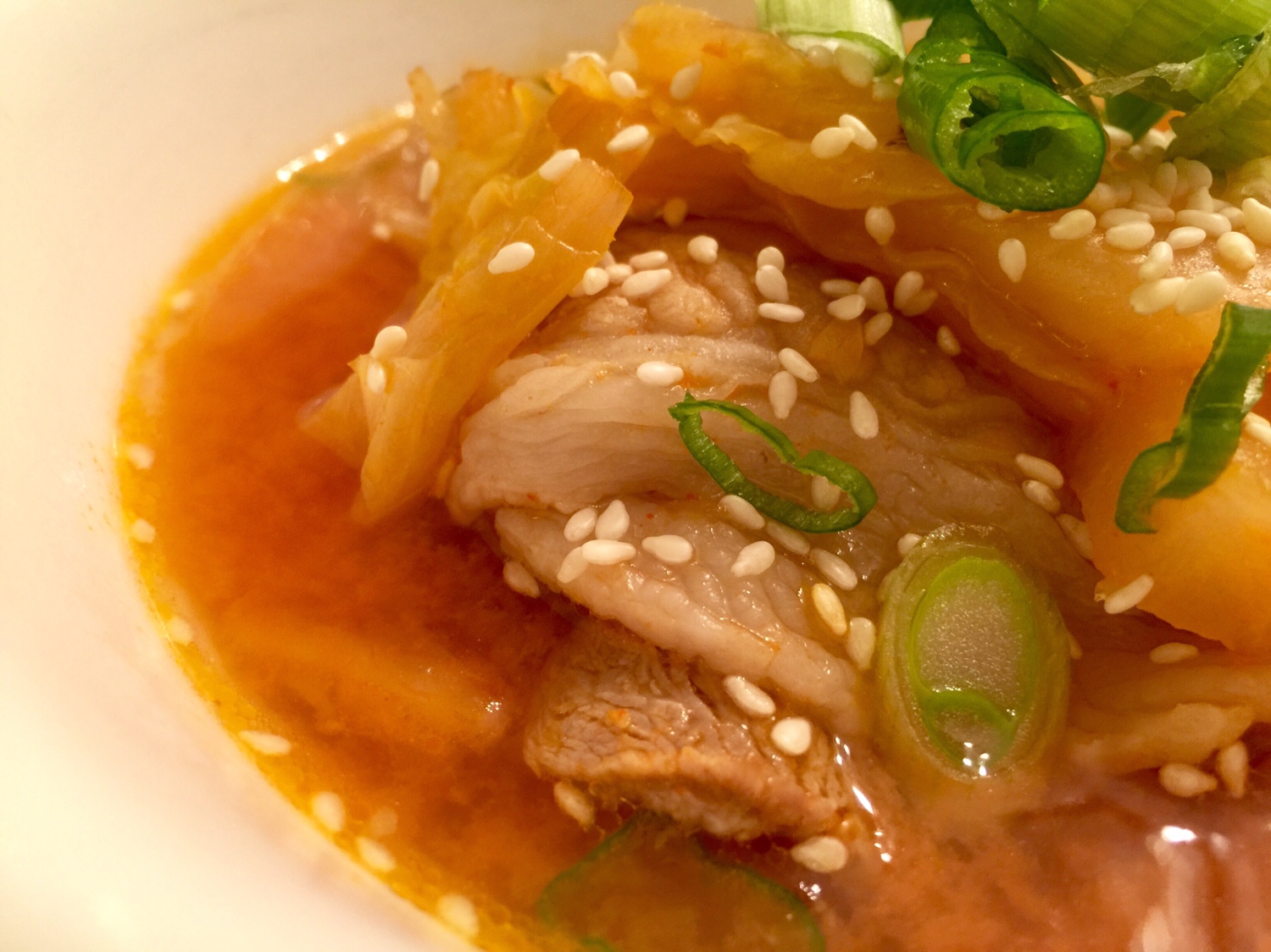 Soon after, I moved in with a Japanese friend who also loves kimchi. One cold night, she boiled up a soup pot, adding almost an entire jar of kimchi to the hot water, along with thinly sliced pork. Sharing that soup with her at her kitchen table is still one of my favourite food memories.